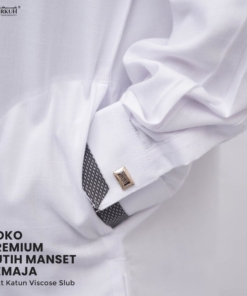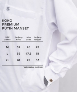 “Koko Syirkuh Premium Putih… perpaduan sempurna antara material kain, kancing, dan kualitas jahitan sehingga menghasilkan produk yang nyaman di pakai serta terlihat mewah nan elegant. Sangat recomended dikenakan untuk acara istimewa, ibadah, ataupun harian”